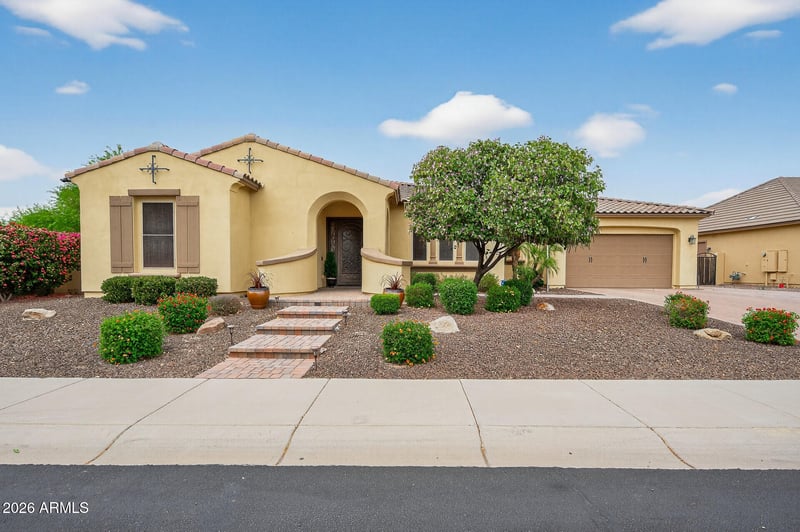 Listing details for 7282 Rowel Rd, Peoria, AZ 85383 : Tucked away on a quiet double cul-de-sac within an exclusive 21-home community, this beautiful single-level home offers a rare blend of privacy, functionality, and elevated indoor-outdoor living. Featuring 4 bedrooms, 3 bathrooms, and an expansive living space, this property stands out from the moment you arrive. The curb appeal is undeniable, situated alongside a grassy space with no neighbors to the West, a paver driveway, custom wrought iron front door, and extensive exterior details welcome you with open arms. Inside, soaring 10-foot ceilings, no interior steps, and a spacious open layout create a home that feels both inviting and effortless. The kitchen anchors the home with a thoughtful balance of function and flow, featuring granite countertops, a sprawling island, gas cooktop, multiple ovens, and a walk-in pantry, all opening naturally to the main living space. Step outside to your own private backyard retreat. An extended covered patio with stone-wrapped columns leads to a fully built-out outdoor kitchen featuring a built-in Bull gas grill, refrigerator, and a wood-fired pizza oven imported from Portugal. The space is further enhanced by a private pool with water features, above-ground spa, low-voltage tree lighting, and built-in stereo system- creating an ideal setting for both entertaining and quiet evenings at home. Additional highlights include a three-panel sliding glass door in the primary suite, custom exterior sunshades, a pre-wired security system with dual keypads, and a freshly repainted exterior (2024). The insulated 3-car garage is so much more than a space for vehicles- it's ready to be an extension of your most enjoyed spaces in this home, and your private cave for creative projects. Enjoy the bonus of extensive built-in storage and work space, along with access to the backyard. Located in North Peoria with desirable north/south exposure, this home offers a rare opportunity to own in a limited, boutique community where homes are seldom available.