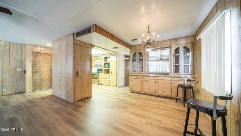 Listing details for 7300 51st Ave #G124, Glendale, AZ 85301 : This is a beauty...2024 renovated DOUBLE WIDE almost 1,200 square feet, spacious home...larger than most apartments. Lots of improvements: new quarts countertops, new laminate flooring, new paint, new shower, new hot water tank and plumbing, new appliances w/ warranty, newer roof (2023), ADA ready with solid, professionally build ramp (2023), 2 covered patios (one on each side of the unit, one is ADA), full laundry room inside, shed outside for extra storage, and more. How does it get any better than this...?