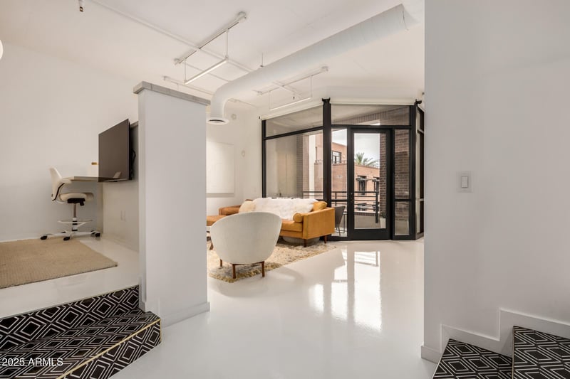 Listing details for 7301 3rd Ave #310, Scottsdale, AZ 85251 : Unlike any other loft residence in Scottsdale, this meticulously curated home was reimagined throughout. From the sleek epoxy floors, to the modern cabinetry to the little finishing touches, you will experience luxury and high design. Every surface has been elevated, marble steps, hand painted Italian backsplash and shower tiles and honed quartzite are standouts as you explore just how large a modest floorplan can live. The striking Slamp entry light sets the lighting landscape. Additional lighting was selected from Design Within Reach with a specific ambiance in mind. In-unit laundry provides for convenience and comfort, while the remote controlled shades provide for privacy and temperature control. Little features not to miss; a built in desk, hidden wires for cable and efficient storage solutions. All of this overlooks the sparkling community pool and lounge area. There is a dedicated secured parking space along with a 6x8 storage unit for your convenience. The entire residence was designed for the sophisticated Scottsdale buyer looking for a home in the center of it all.