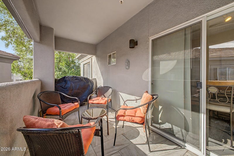 Listing details for 7401 Arrowhead Clubhouse Dr #2068, Glendale, AZ 85308 : Tastefully furnished and highly upgraded 2-bedroom apartment in the gated Fairways at Arrowhead Condominiums! This inviting home welcomes you with a serene living room featuring soaring ceilings, a soft neutral palette, classic plantation shutters, and plush carpeting for added comfort. The beautifully updated kitchen is designed to impress, offering butcher-block countertops, white custom Shaker cabinetry, a stylish tile backsplash, track lighting, stainless steel LG appliances, a pantry, and a peninsula with a breakfast bar -perfect for casual dining and entertaining. The spacious primary bedroom provides a relaxing retreat with a private en-suite bathroom and a generous walk-in closet. The second bedroom is ideal for guests, a home office, or additional living space. Step outside to your private balcony, a perfect spot to unwind with a morning coffee or evening drink while enjoying the peaceful surroundings. Residents of this desirable community enjoy resort-style amenities including a sparkling pool and spa, lush green spaces, scenic lake views, and proximity to golf courses, shopping, dining, and entertainment. Don't miss this exceptional opportunity to own a move-in-ready home in one of Arrowhead's most sought-after gated communities!