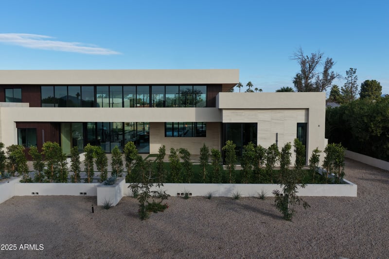 Listing details for 7432 Wethersfield Rd, Scottsdale, AZ 85260 : Brand-new 9,000 SF modern estate on 1.1 acres offering 8 bedrooms, 10 baths, and 7 garage spaces. Thoughtful split floor plan features an expansive great room, chef's kitchen + hidden prep kitchen, and walls of glass opening to the resort-style backyard. Primary suite occupies its own wing for privacy, while a nearby flex space with French doors and full bath—separated by a wine wall—is ideal for lounge, office, or gym. Detached guest house serves as a complete secondary residence with kitchen, living room, laundry, 3-car garage, and private gated entry. Outdoor amenities include pool, kitchen/bar, and sports court. This estate blends comfort and entertainment with a seamless indoor-outdoor design. Each bedroom offers its own en-suite bath, providing privacy for family and guests. The detached guest house makes multi-generational living or hosting long-term visitors effortless. Resort amenities include a sparkling pool, outdoor bar and kitchen, and full sports court. With modern architecture, high-end finishes, and move-in ready completion, this is one of Scottsdale's rare new-build luxury offerings.
