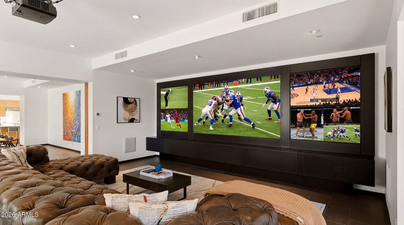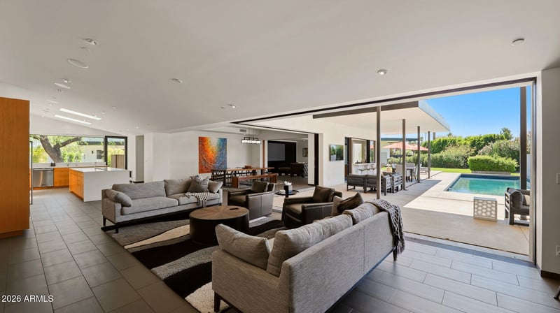 Listing details for 7433 Cholla Ln, Scottsdale, AZ 85250 : Step into refined desert luxury with this stunning contemporary modern estate, perfectly situated in the heart of Scottsdale on nearly an acre with complete privacy. Spanning an impressive 5,650 square feet, this exceptional residence seamlessly blends sophisticated design with resort-style living. The main home features 5 spacious bedrooms and 5 beautifully appointed bathrooms, offering both comfort and elegance at every turn. Clean architectural lines, expansive glass including a massive disappearing 90 degree door, one of the best solar systems on the market and thoughtfully curated finishes create a light-filled, open atmosphere ideal for both everyday living and entertaining. A dedicated home theatre provides the ultimate cinematic experience without ever leaving home. Adding incredible versatility, a brand-new 979 square foot detached casita offers its own private retreat, complete with a bedroom, bathroom, and full kitchen--perfect for guests, extended family, or a luxurious home office setup. Outdoors, the property transforms into a true personal resort. Enjoy a sparkling pool and spa surrounded by all-new, meticulously designed landscaping, creating a serene and private oasis. For sports enthusiasts, a fully lit pitching and batting cage delivers a one-of-a-kind amenity rarely found in residential properties. All of this is set against breathtaking mountain views, with complete privacy while still being just moments from the best dining, shopping, and entertainment Scottsdale has to offer. This is more than a home--it's a lifestyle defined by luxury, privacy, and unparalleled amenities.