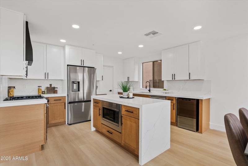 Listing details for 7480 Christmas Cholla Dr, Scottsdale, AZ 85255 : Beautifully remodeled 4-bedroom, 3-bath + loft residence in the sought-after Pinnacle Reserve, ideally positioned on a premium lot backing to NAOS with breathtaking desert and mountain views. The open, flowing floor plan is designed for both effortless entertaining and comfortable everyday living. The chef's kitchen showcases shaker-style cabinetry, quartz countertops, stainless steel appliances, a wine refrigerator, and a walk-in pantry, seamlessly connecting to the main living areas. Expansive multi-slider doors open to the backyard, creating exceptional indoor-outdoor living. A versatile downstairs bedroom or office offers flexibility for guests or a home workspace. Upstairs, a spacious loft/game room with balcony access provides stunning views and additional living space. The luxurious primary suite features a large walk-in closet and a spa-inspired bathroom complete with quartz countertops, a large soaking tub, double sinks, a walk-in shower, and designer tile finishes. Thoughtful designer tile accents flow throughout the home, adding a cohesive, modern touch. The resort-style backyard offers ultimate privacy with artificial turf, a pool, spa, covered patio, and paver hardscape, all set against the serene desert backdrop. Ideally located near dining, entertainment, and with convenient access to the Loop 101, this home is truly a must-see.