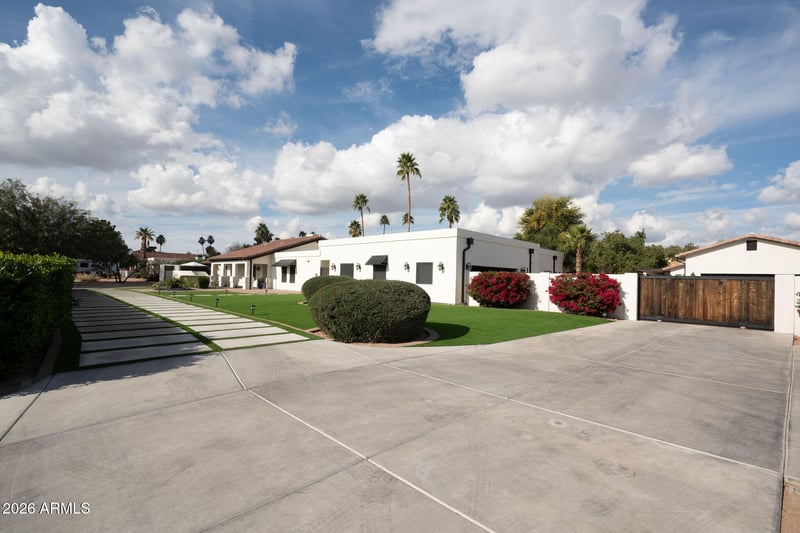 Listing details for 7480 Sweetwater Ave, Scottsdale, AZ 85260 : WELCOME HOME to the highly desirable neighborhood of SWEETWATER ESTATES! NO HOA! COMPLETE REMODEL!! This stunning private estate sits on just under an acre and is lined with Indian Laurels and beautiful blooming white roses located in the heart of Scottsdale. The semi-circle drive with turf and concrete pavers take the home to another level of elegance. CHEF'S DREAM GOURMET KITCHEN w/ Double ovens, 2 dishwashers, Bar/coffee station, 2 HUGE walk-in pantries (one has W/D hook up). Open/Great Room Floor Plan, perfect for entertaining and everyday living. Custom screened Iron front door welcomes you into the home. Large plank tiles throughout the home. 5 Beds/5 baths in main house. Remodel included adding a Large primary suite and MASSIVE Laundry room were added to main house in 2022. Main home has beautiful marble stone two-way fireplace creating the perfect ambiance in the living room and dining area. The huge Chef's kitchen is inviting with plenty of space for family to gather. The perfect entertaining space. Large laundry in back of house. Walk down the private hallway to the secondary master with a jetted tub, double sinks, and large walk-in closet. The other en-suite bedroom has a private entrance, walk-in shower, and a spacious walk-in closet. Step into the newly built OVERSIZED Primary Suite features luxurious and beautiful spa like bathroom. Marble tiled herringbone shower area which encompasses the shower with dual waterfall shower and handheld and a large soaking tub. Large newly built laundry which includes a dog shower/ anything rinse off area with great drainage and plenty of cabinets and storage space. Gas heated pool was rebuilt, and limestone pavers (never get hot) were added to create the beautiful resort style backyard. (2022) Impressive Guest house built in 2020 and is 2 bedrooms, office, and 2 bathrooms with chef's kitchen. Just under 1800 sq ft the guest house is an incredible living space and great investment property with its own private garage and entrance. Great opportunity for a double investment property where you could rent out the main house and the guest house. 2 car insulated garage attached to the main house and 2 car garage attached to the guest house with the ability to add on at least 8-10 more garage spaces if needed. Lots of parking around the home in designated areas. Turf in the front and back yard along with the landscape makes this home easy to maintain. All 4 Air conditioners are new within the past 2-4 years. 3 New gas hot water heaters. New roof in 2025 A fully set up garden on the west side of house and fruit trees on the east side of the home.