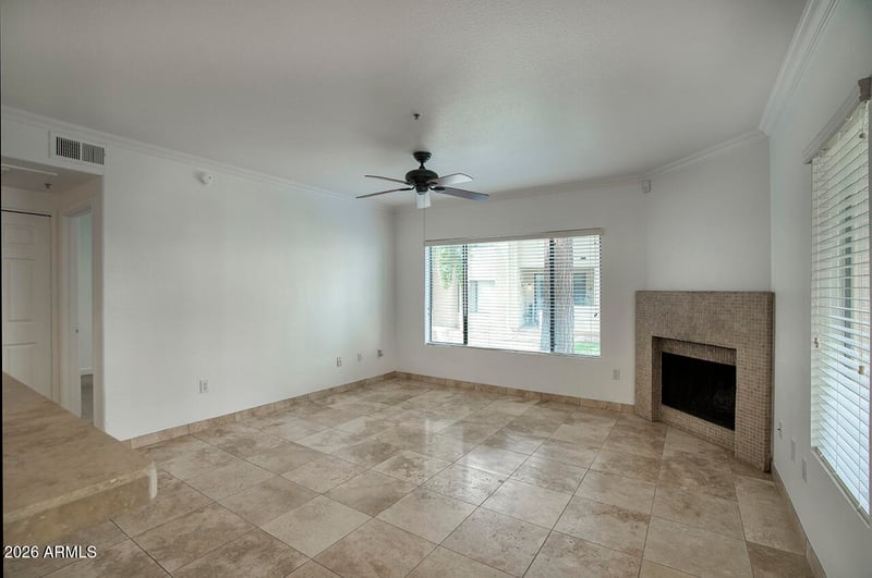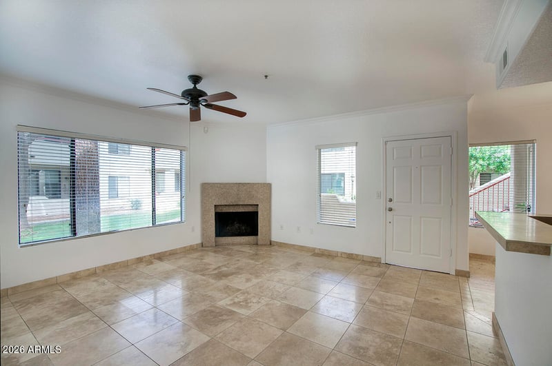 Listing details for 750 Northern Ave #1055, Phoenix, AZ 85020 : A rare opportunity in Las Brisas, this desirable ground level one bedroom is the kind of home that rarely comes available. Privately set in a quiet interior location, it offers mature trees, peaceful courtyard views, BBQ area, and a charming private patio that feels like your own outdoor retreat. Inside, the freshly painted interior is bright, inviting, and truly move in ready, with an open layout, cozy fireplace, dining area, well designed kitchen, and a spacious bedroom with walk in closet and direct access to the bath. Enjoy the ease of single level living in one of North Central's most sought after gated communities with three pools, spa, fitness center, tennis, pickleball, and direct access to the canal path. A must see for anyone seeking comfort, charm, and location.