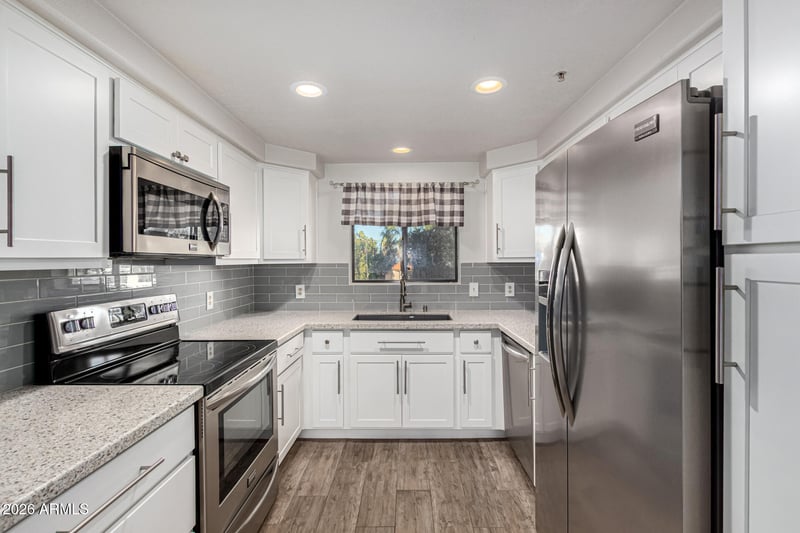 Listing details for 750 Northern Ave #2143, Phoenix, AZ 85020 : Completely updated condo in the beautiful, gated community of Las Brisas - perfectly located in N Phoenix. This 2 bed, 2 bath home has been thoughtfully remodeled, with new white shaker cabinets in kitchen and baths, all new quartz counter tops throughout, stainless appliances, new fixtures and more. Intelligent design makes great use of the space - a split floor plan, both bedrooms have walk-in closets, and there is an in-unit washer & dryer, and exterior storage closet. Living room gives way through sliding glass doors to your own private balcony, overlooking sparkling pool and cabana. Community offers resort-style amenities, with 3 swimming pools (heated), a fitness center & tennis/pickleball courts. Check out this location - 20 min to the airport and downtown, with direct canal access - perfect for walking, biking or hiking. Also, just 2 minutes to the Phoenix Mountain Preserve and Dreamy Draw Recreation Area. A beautiful home in a perfect setting!