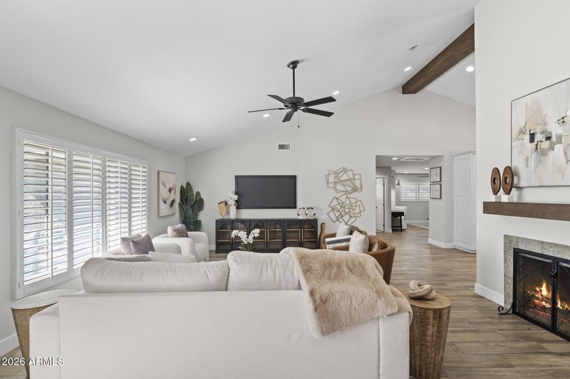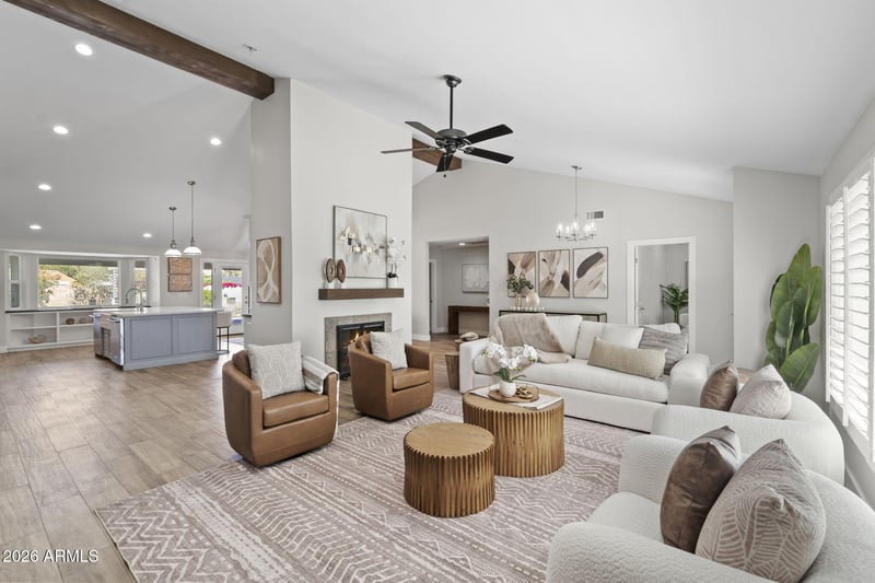 Listing details for 7520 Ann Way, Scottsdale, AZ 85260 : HUGE 24,000 sq ft cul-de-sac lot in coveted Buenavante! NO HOA! This fully remodeled home is a true surprise--unassuming at first, but unforgettable once inside. Open the front door and you're immediately met with soaring ceilings, a split floor plan, and beautifully updated interiors that deliver an instant ''wow.'' The kitchen is best in class, featuring a large island, honed marble countertops, double dishwashers, a 48'' Thermador gas range with vent hood and pot filler, and a Thermador side-by-side refrigerator. At the heart of the home, a large great room anchors the space with a two-way fireplace connecting the kitchen, dining, and family areas. The layout offers 3 bedrooms plus a bonus room and dedicated office, with secondary bedrooms separated by a flex space ideal for a den, playroom, or teen retreat. If the home impresses, just wait until you walk through the French doors into the ultra-secluded, expansive backyard. The scale and sense of privacy are unexpected--especially this close to everyday amenities--creating a rare feeling of openness. Mature landscaping surrounds a large pool with a baja deck, along with pergola dining, a built-in grill, a storage shed, and paver patios and walkways throughout. The space offers unmatched flexibility--whether you envision a guest house, a pickleball court, or simply keeping it open to enjoy. Rare 4-car garage w RV gate, owned solar, whole house fan and newer roof complete the package. Do not miss this one!!! Minutes from shopping and dining at Kierland Commons, the Scottsdale Quarter, A+ Sonoran Sky Elementary and the JCC. Easy 101 access.