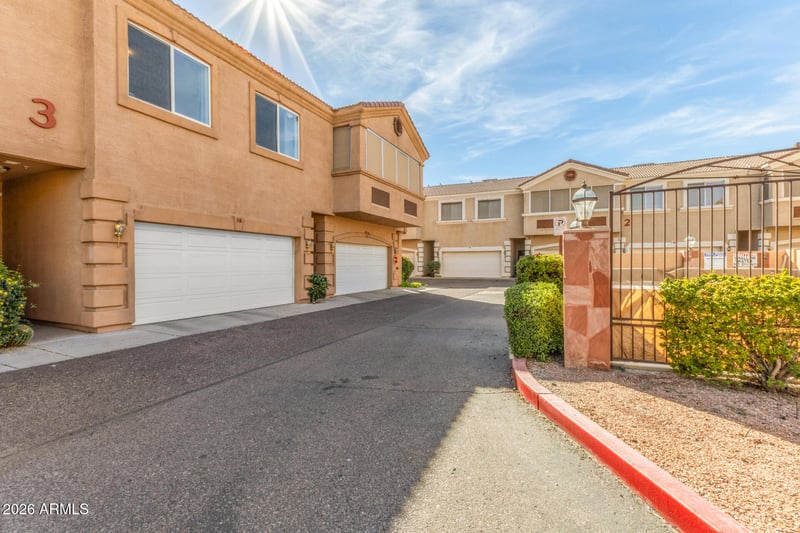Listing details for 7528 19th Ave #16, Phoenix, AZ 85021 : Charming townhome in the gated Community of The Fountain! Providing 3 beds, 3 baths + powder room, & a 2-car garage. The inviting interior features tons of natural light, neutral palette, and wood-look flooring t/out. You'll love the desirable great room! The kitchen boasts SS appliances, staggered wood cabinetry, a built-in desk, recessed lighting, and a 2-tier peninsula w/breakfast bar. All bedrooms await upstairs, each equipped with an attached bathroom! Enter the large main bedroom to find sliding doors to the balcony, a cozy sitting area with a fireplace, and an ensuite with dual sinks & separate/shower. The private backyard, with a covered patio, is the ideal spot to relax or enjoy BBQ. PLUS! The community pool is centrally located between the buildings for easy access. Welcome home!