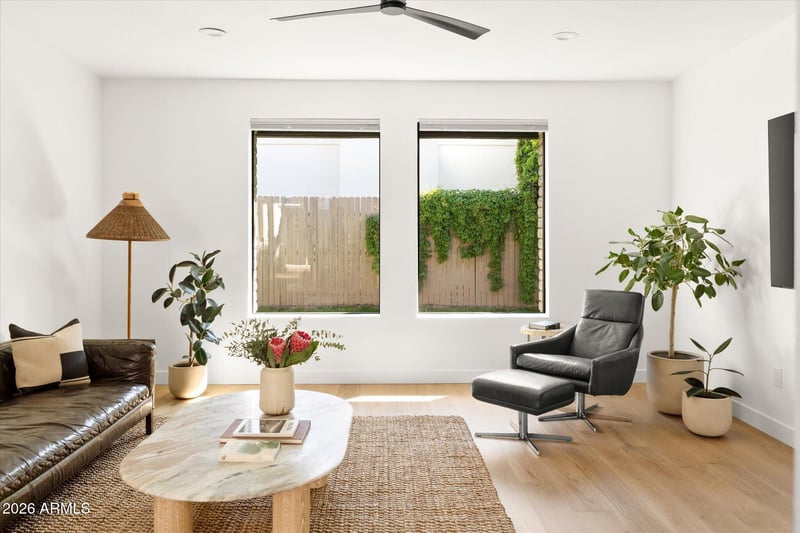 Listing details for 7536 10th St, Phoenix, AZ 85020 : Become the fourth family to own this unique North Central gem. A sprawling 3550 square feet centered around a striking interior atrium -an architectural feature rarely found at this scale -the home is flooded with light and character. New hardwood floors span the property and are complimented by new interior doors, baseboards and fresh paint. Anchored on a 15,000 square foot lot with flood irrigation, mature trees and no power lines. Refinished pool with baja shelf, cool decking and serene landscape. The kitchen blends original charm with functionality. All three bathrooms are upgraded in alignment with the midcentury bones of the home. New dual pane windows, metal roof, electric car charger, and multiple bonus spaces. This isn't just a home, it is a place where life unfolds.