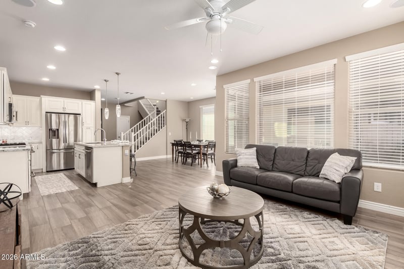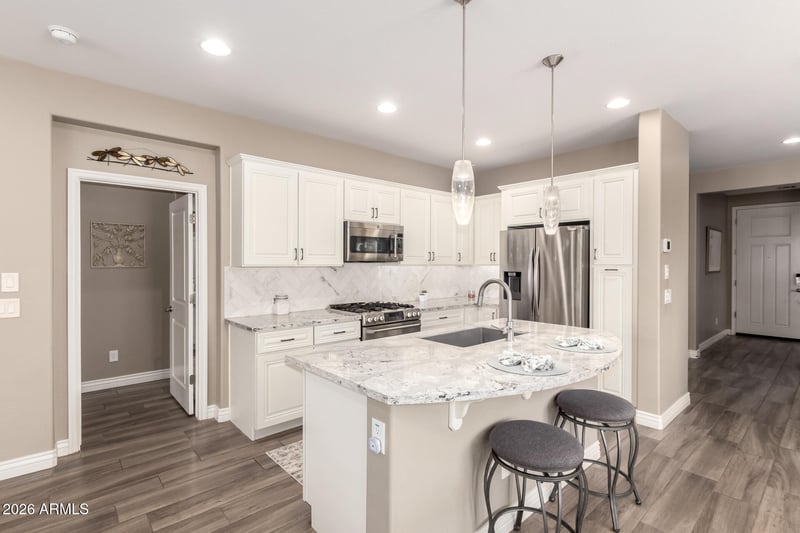Listing details for 756 Verde Blvd, Queen Creek, AZ 85140 : The moment you enter the prestigious Encanterra community, you'll feel right at home. This stunning residence features 3 BD 3 full BA, Den and a spacious loft, with the primary suite located on the main level. The kitchen is a true chef's dream, high-end granite countertops, upgraded backsplash, stainless steel appliances, gas cooktop, and a large center island perfect for everyday living and entertaining. The open-concept design flows seamlessly into the great room, creating an ideal space for gatherings. Step outside to a charming patio with a cozy fire pit, The exterior painted in Fall 2025, BE impressed this home perfectly blends comfort, style, and the exceptional lifestyle Encanterra is known for, all while being conveniently located next to a scenic walking path.