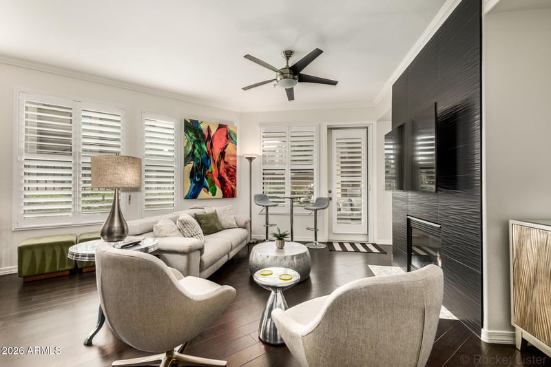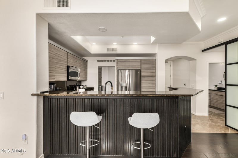 Listing details for 7601 Indian Bend Rd #1039, Scottsdale, AZ 85250 : Location, Location, Location! Resort Living. Golf Course Views. Scottsdale at Your Doorstep. Welcome to Corriente, backing directly to Silverado Golf Course & steps from the bike path, dining, shopping, & Loop 101. This beautifully upgraded 2-bedroom condo blends comfort & style w/: • Hard surface flooring throughout • Plantation shutters & designer lighting • Custom tile gas fireplace • Granite countertops & updated cabinetry and new appliances. Tankless gas water heater (2022) . Full home water filtration The spacious primary suite offers a spa-inspired bath, glass & tile shower, large custom walk-in closet, and private patio access. Enjoy gated, resort-style amenities including a pool, spa, fitness center, clubhouse, elevator access, and two underground parking spaces. Low-maintenance luxury in one of Scottsdale's most desirable locations -- live where others vacation. All designer furntures and de'cor are available for purchase on a seperate bill.