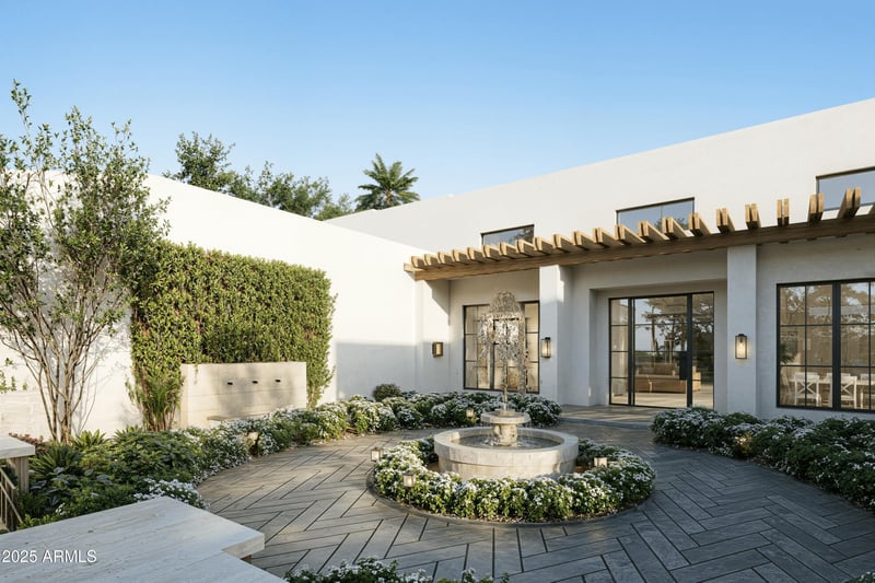Listing details for 7641 Wood Dr, Scottsdale, AZ 85260 : This Spanish Modern new construction estate presents a refined take on desert luxury, set on nearly one acre within the highly coveted Cactus Corridor. Designed by architect Brock O'Neil and Osuna Design in collaboration with Bolack Luxury, the residence is scheduled for completion in April 2026 and offers approximately 6,376 square feet with 6 bedrooms and 7 bathrooms. The design blends warmth and modern sophistication, featuring curated architectural details and seamless indoor outdoor living ideal for both everyday comfort and elevated entertaining. The resort style grounds include a pool and spa, full sport court, and expansive outdoor living areas, complemented by a detached casita ideal for guests or a private office. The primary suite functions as a private retreat complete with