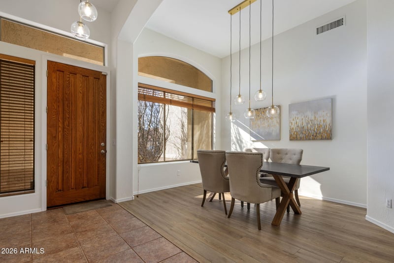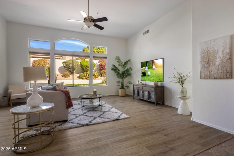 Listing details for 7652 Softwind Dr, Scottsdale, AZ 85255 : Welcome to this beautifully designed North Scottsdale home in the gated La Vista community of 85255. Featuring a desirable split floor plan, this property offers 3 bedrooms, a dedicated office, and a spacious primary suite with a large bathroom and walk-in closet. The open floor plan showcases a generous kitchen with a large island and seating, plus both a formal dining room and casual kitchen dining. Sliders open to a resort-style backyard with a pool, lush landscaping, and a deep covered patio—perfect for entertaining. Complete with a 3-car garage with built-in cabinets, spacious laundry room, playground, walking paths, and close proximity to world-class golf and hiking. Freshly painted and new flooring in main living areas.