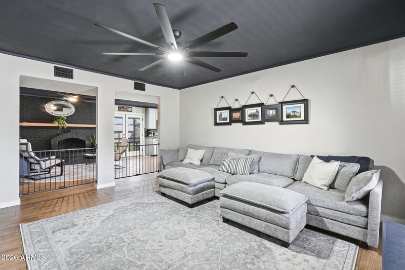 Inside, the home has a fresh, modern feel with wood-look tile throughout the main living areas, fully remodeled bathrooms, new interior doors, updated hardware, modern light fixtures, over-sized baseboards, trendy feature walls, and designer paint colors. The popcorn ceilings have also been removed, giving the home a clean, contemporary look. The backyard is set up for easy, low-maintenance living with artificial turf, decorative granite and storage shed. There's also extended fencing and an RV gate, offering extra space for parking, trailers, or recreational vehicles.