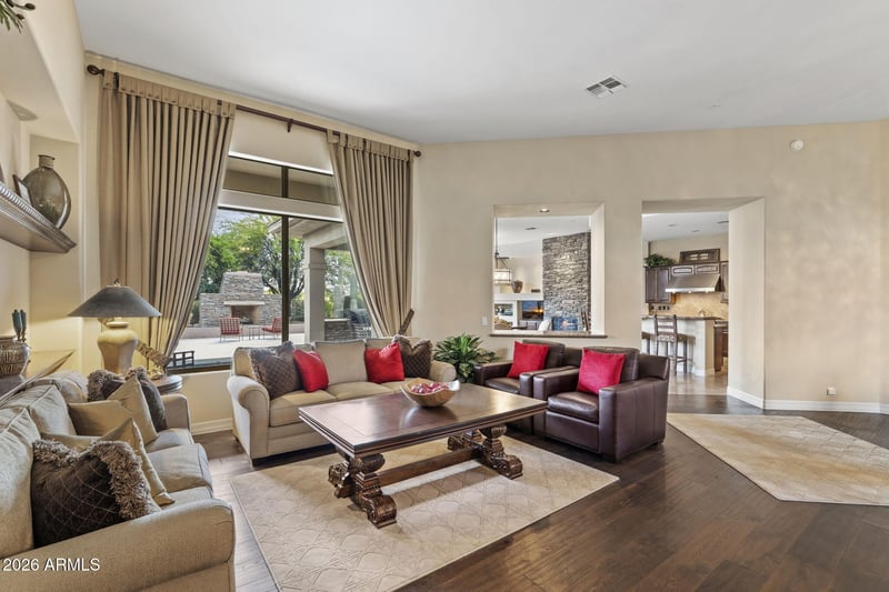 Listing details for 7719 Moura Dr, Scottsdale, AZ 85266 : Professional photography will be available shortly. Peace and Quiet at its best. Nestled in the sought after, guard gated community of Bellasera, step into one of its most popular floor plans on a large premium south-facing lot which offers incredible mountain views and privacy. Thoughtfully designed floor plan boasts a spacious great room format, gourmet kitchen with high end appliances, a private primary sanctuary with a large bath and closet, three car garage, and incredible outdoor living space with a sparkling pool, built in BBQ and outdoor fireplace. Bellasera offers many amenities including a fitness center, dog park, tennis, pickle ball, and walking trails while being close to shopping, dining, and world class golf.