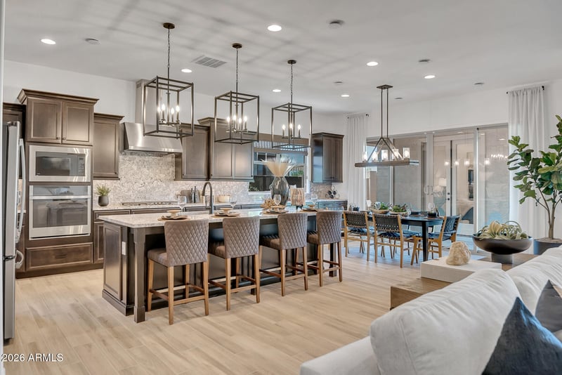 Listing details for 774 Pelican Dr, Queen Creek, AZ 85140 : Absolutely stunning model home just over 2,900 sq ft featuring 3 bedrooms, 2.5 baths, plus a detached casita with its own bedroom and full bath--ideal for guests or multigenerational living. Beautifully upgraded with designer finishes, rich color palettes, and a stylish morning kitchen with beverage cooler and sink. Enjoy mature, professionally designed front and backyard landscaping with a cozy outdoor fireplace. Located in a highly sought-after community with resort-style amenities--final model opportunity.