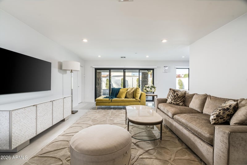 Listing details for 7742 Buena Terra Way, Scottsdale, AZ 85250 : Fully remodeled luxury home in Scottsdale offering over 2,000 sqft of elevated design and indoor-outdoor living. This 2-bed, 2-bath residence features soaring ceilings, large-format porcelain tile, and custom Stylite cabinetry throughout. The chef's kitchen is equipped with premium Wolf appliances, a Sub-Zero refrigerator, and stunning Bianco quartzite counters from Aria Stone Gallery. The spacious primary suite includes a spa-inspired bath with custom glass shower, Watermark fixtures, and Restoration Hardware finishes. Step outside to a private backyard retreat with a porcelain tile patio, gazebo, and PebbleTec saltwater lap pool with a water feature and mosaic entry. Additional highlights include Hunter Douglas shades, whole-home water softener, and and a 2-car garage with added storage.
