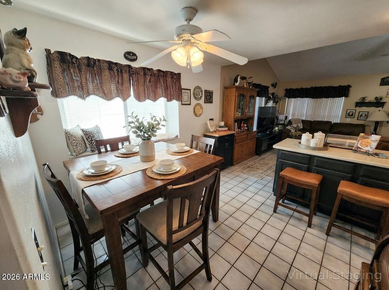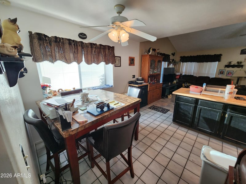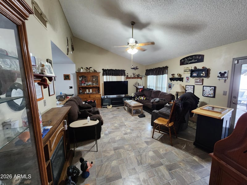 Listing details for 7814 Cherry Hills Dr, Peoria, AZ 85345 : **Spacious Peoria Home with POOL, RV Gate & Vaulted Ceilings!** Fantastic with some TLC! 3-bedroom home features soaring vaulted ceilings, separate living and family rooms, and a cozy wood-burning fireplace. The large kitchen offers abundant oak cabinetry, generous counter space, a breakfast bar, perfect for everyday living and entertaining. The primary suite includes a private sitting area and dual sinks in the en-suite bath. Step outside to an oversized backyard with a covered patio and a 12' RV gate leading to a concrete slab for RV parking. Space, function, and flexibility -- all in a great Peoria location.