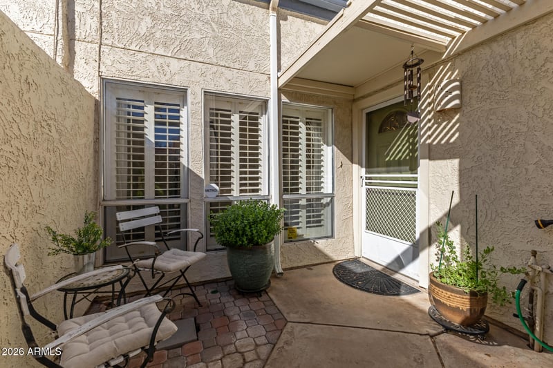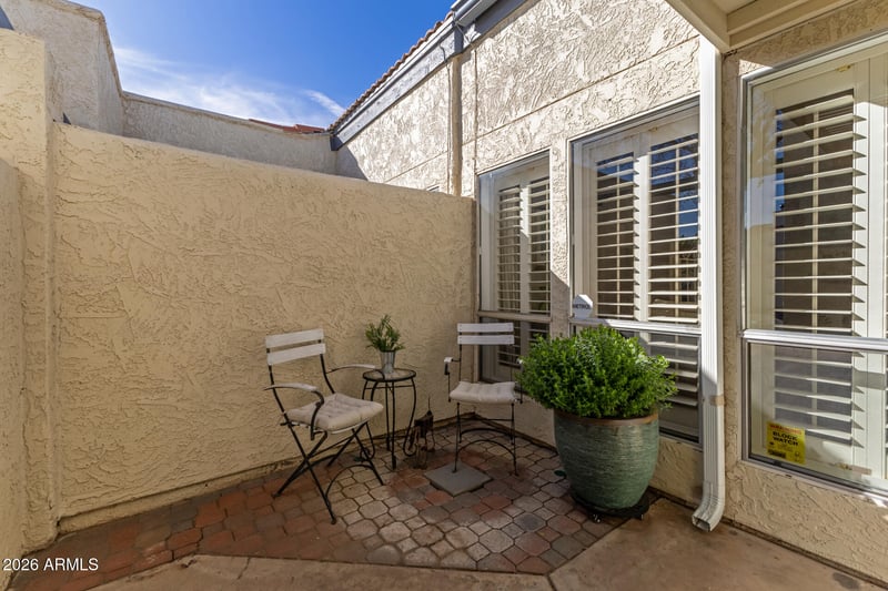 Listing details for 7830 21st Dr, Phoenix, AZ 85021 : Welcome to this gated single-story townhouse that blends timeless character with comfortable living. This 2 bedroom, 2 bathroom home features vaulted ceilings with exposed wood beams, creating an open and airy feel throughout the main living space. A classic brick fireplace anchors the living room, perfect for cozy evenings at home. At the heart of the property is a private atrium, bringing in natural light and a unique indoor-outdoor ambiance. The spacious primary suite and secondary bedroom offer flexibility for guests, a home office, or personal retreat. Step outside to your private back patio, ideal for relaxing or entertaining. Additional highlights include a garage with built-in cabinets, providing excellent extra storage. Under 5 miles to Grand Canyon University