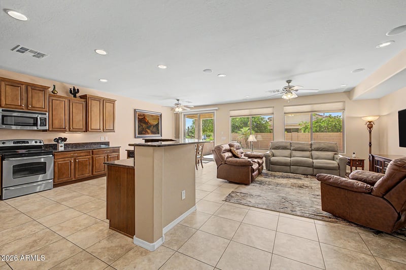 Listing details for 7835 Discovery Way, Florence, AZ 85132 : WRITE THE NEXT CHAPTER OF YOUR LIFE! Welcome to this beautiful PROVIDENCE, offering an open floor plan + furnished! The paver front courtyard creates a warm & welcoming entry. Step inside to a bright, open-concept layout that's perfect for everyday living & entertaining. The kitchen features granite counters, dbl pull out shelves, stainless appliances, staggered cabinetry & opens seamlessly to the dining & spacious great room. Primary suite is a comfortable retreat w/ plush carpeting & bay window that brings in natural light. The ensuite bath includes a walk-in shower w/ grab bar, dual vanities, makeup vanity & spacious walk-in closet. Other highlights include an ext.2-car garage w/ epoxy floors, cabinets, FULL THIRD CAR GARAGE, OWNED solar & steps away from the COMMUNITY PARK! Sun City Anthem at Merrill Ranch offers a 48,000 SF recreation center w/ craft rooms for quilting, pottery, glass works, jewelry & crafts, spacious ballroom w/ stage for dancing, theatrical productions, concerts & more. PLUS full gym, work out rooms, indoor lap pool & spa, walking track, cafe area, card rooms, poker tables, pool table, ping pong table, business center, class room for interesting seminars! Troon Poston Butte Golf Course is one of the nicest in the area. Sun City offers Pickleball, Tennis, Bocce Ball, Horseshoes, Shuffleboard, clubs for all activities.......LIVE WHERE THE SURROUNDINGS DELIGHT, INSPIRE & CHALLENGE YOU!