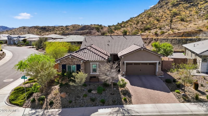 Listing details for 7854 167th Ave, Goodyear, AZ 85338 : Perched along the scenic mountainsides of Estrella, this stunning Single Neighbor Home captures sweeping Sonoran Desert views & refined desert living on a Prime lot. Thoughtfully designed with 3 bedrooms, a private den + a versatile flex space, the home blends comfort, style, & functionality. The light-filled great room frames breathtaking mountain vistas & opens to a beautifully appointed chef's kitchen featuring granite countertops, upgraded cabinetry, a generous center island, and the rare convenience of dual walk-in pantries. Retreat to the tranquil owner's suite where panoramic Sonoran views set the stage for relaxation. The spa-like bath includes dual vanities, shower, and oversized walk-in closet. Outdoors, the premium VIEW lot offers prime R & R with thoughtful upgrades. An extended patio with pergola, travertine hardscape, paver accents, and lush turf plus putting green create a private backyard oasis perfect for sunset gatherings under Arizona's painted skies.