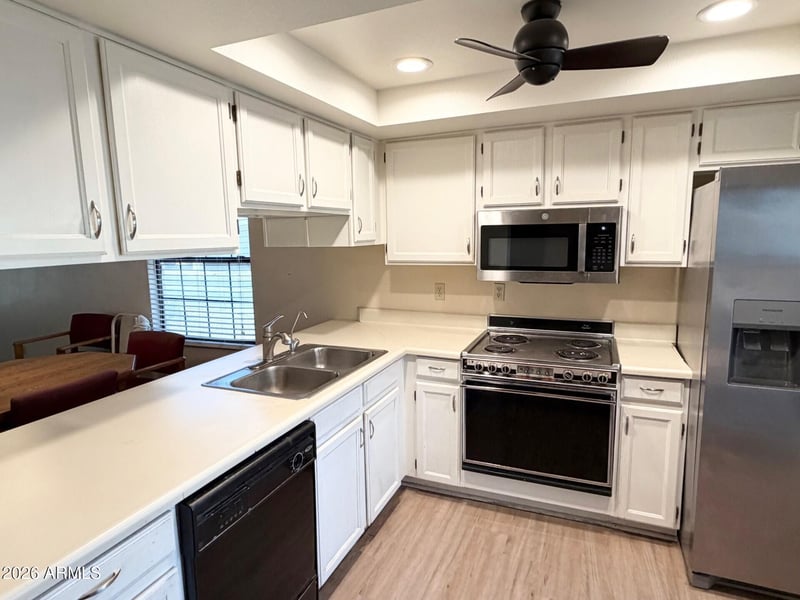 Listing details for 7915 Privet Dr, Mesa, AZ 85208 : Welcome to easy, lock-and-leave living in the heart of Fountain of the Sun, East Mesa's premier 55+ guarded and gated golf community. This End Unit condo offers 2 Bedroom, 2 Bath and 1 Car Carport, Step inside to a welcoming great room with abundant natural light and a seamless flow into the dining area and kitchen. The kitchen provides plenty of cabinet space, a functional layout, The primary suite offers generous space, a walk-in closet, and an en-suite bath, while the guest bedroom is ideal for visitors or a hobby room. Roof (2018), Heat Pump (2021), Water Heater (2021), Exterior Painted (2025), Enjoy Arizona's beautiful weather from your private patio, perfect for morning coffee or relaxing after a round of golf. Living in Fountain of the Sun means access to resort-style amenities.