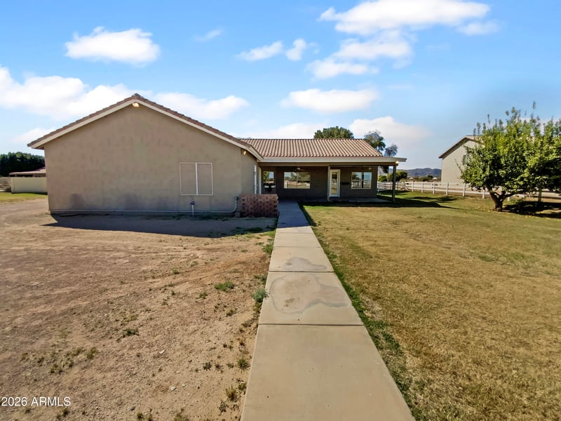 Listing details for 7921 175th Ave, Waddell, AZ 85355 : Discover the charm of 7921 N 175th Ave, an irrigated large lot property that boasts a kitchen equipped with all stainless steel appliances, an accent backsplash, and a functional kitchen island. Horses ok. The primary bathroom is a haven of relaxation with double sinks, a separate tub, and a shower. The primary bedroom features a spacious walk-in closet. Outside, enjoy a covered patio and a fenced-in backyard, perfect for leisurely afternoons. The home's interior has been refreshed with new paint and partial flooring replacement. No HOA. This property is a perfect blend of comfort and style.. Included 100-Day Home Warranty with buyer activation