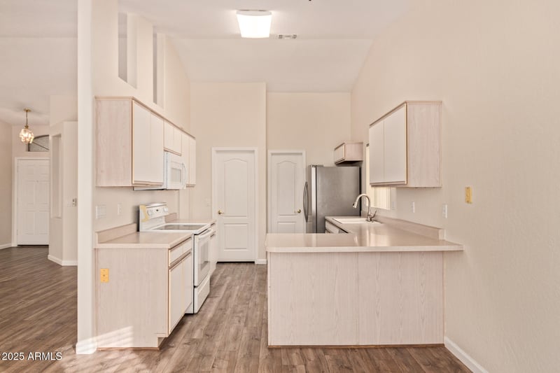 Listing details for 7927 Caballero St, Mesa, AZ 85207 : Home, sweet home! This adorable single-story home awaits you in a prime corner lot in Coury Manor! Featuring 3 bedrooms, 2 bathrooms & a 3-car garage with attached storage. The interior boasts soaring vaulted ceilings throughout, wood-look floors, plenty of natural light, and earthy colors. Whip up your signature dishes in the well-appointed kitchen, complete with ample cabinetry and counter space, a pantry, and essential appliances to make home cooking a breeze. The main bedroom promises a good night's sleep and showcases a closet and an ensuite with double sinks. Get ready for weekend grills and peaceful evenings in the backyard, including a cozy covered patio perfect for morning coffee. Freshly painted and brand new carpet!