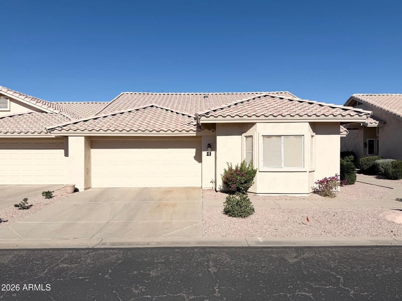 Listing details for 7928 Pueblo Ave #21, Mesa, AZ 85208 : Welcome to easy, low‑maintenance living in the heart of Fountain of the Sun, Mesa's premier 55+ guarded and gated golf community. This inviting FURNISHED, 2 Bedroom 2 Bath Condo in Pueblo Estates offers a bright, Open Floor Plan & Vaulted Ceilings with thoughtful updates throughout, including an Updated kitchen with Granite counters and sleek black slate appliances, and Beautiful Laminate Flooring, Both Bedrooms have Walk-In Closets, Primary Bathroom w/ Granite Counter & Tiled Primary shower that elevates the owner's suite. Guest Bathroom w/ Granite Counter and Tub/Shower, Built-in Desk Epoxy‑coated garage floor, Garage Storage Cabinets, Heat Pump (2023), Water Softener, Enjoy the lock‑and‑leave lifestyle plus access to a vibrant community offering an 18‑hole spa, fitness center, pickleball, onsite restaurant, and endless social activities. Conveniently located near shopping, dining, and major freeways, this home places you at the center of the activeadult lifestyle Fountain of the Sun is known for.