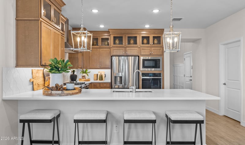 Listing details for 7933 77th Dr, Glendale, AZ 85303 : Discover effortless living at Chalet at Legacy Place, where resort-style amenities including a pool, playground, and BBQ ramada invite relaxation and connection. Ideally located near Loop 101, this Chawton plan home offers easy access to top shopping, dining, and entertainment. Inside, Classic-inspired finishes complement a bright open great room and dining area. The chef's kitchen shines with Frost White cabinetry, Calacatta Laza quartz countertops, and GE Profile stainless-steel appliances. A versatile home office adds flexibility, while the tranquil primary suite features a spa-like bath with dual vanities, a walk-in shower, and a freestanding soaking tub. Three additional bedrooms complete this thoughtfully designed home. ^^Up to 6% of Base Price can be applied towards closing cost and/or short-long-term interest rate buydowns when choosing our preferred Lender. Additional eligibility and limited time restrictions apply. Ask for more information!