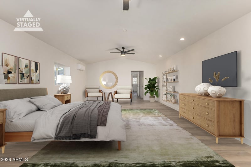 Listing details for 7937 Loma Land Dr, Scottsdale, AZ 85257 : Charming mid-century home with a prime Scottsdale location is move-in ready! Featuring timeless curb appeal and a thoughtfully updated interior, this residence seamlessly blends modern functionality with classic comfort. Enjoy the privacy of a fully fenced yard, fragrant orange trees, ample parking, and a covered porch. Discover a renovated interior showcasing neutral paint, popular wood-look plank floors, and 52'' LED ceiling fans throughout. The bright living room flows into a large eat-in kitchen, perfect for entertaining. Equipped with abundant storage, tile backsplash, granite countertops, and recessed lighting, the kitchen provides a utopia for any cooking enthusiast. The huge bonus room with vaulted ceilings and backyard access provides flexible space for a family room or entertainment area. The front bedroom has private entrance, ideal for guests, in-laws, or potential short-term rental. The backyard features a covered patio, flagstone and pavers, and convenient alley access. Close to markets, restaurants, shops, schools, parks, and entertainment; with easy freeway access, this gem offers everything you need. Don't miss it!
