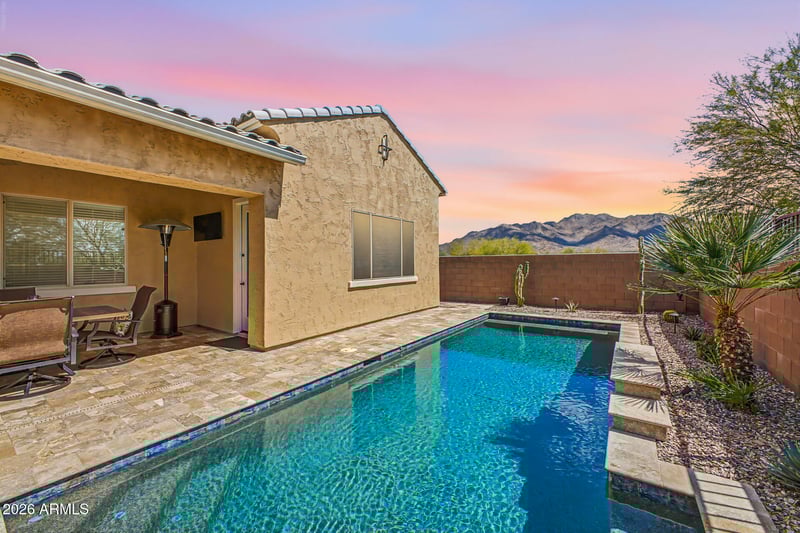 Listing details for 7962 Parkcrest St, Gilbert, AZ 85298 : Nestled at the end of a quiet street and bordered on 2 sides by natural desert, this exceptional home offers unobstructed views of the stunning San Tan Mntns, creating a private, serene backdrop that's hard to find. This highly sought-after single story great room floor plan features a desirable split-bedroom layout & includes a 4- car garage w/ utility sink and service door to b/yard. Immaculately maintained this 4 bedroom, 2.5 Bath home showcases upgrade finishes thruout. Gourmet kitchen is standout with dbl b/i ovens, 5-burner gas cooktop and honed granite c-tops, an oversized island and glass tile b/splash. Enjoy coffee in the charming breakfast nook or take advantage of the oversized DR, perfect as-is or repurposed to fit your lifestyle. Step outside to your private retreat.... backyard retreat, designed for both relaxation and entertaining, including a Pebble Tec, low-maintenance saltwater pool system, with Travertine pool decking and Pentaire Easy Touch system, custom pergola with adjustable louvers, low-maintenance artificial turf, and B/I BBQ. Blending comfort, style and abundant light, this home truly offers the best of Arizona living. Many extras thru out including fully insulated walls and garage door perfect for shop work, or tinkering on your boat or restored car, RO and soft water system, and solar sunscreens. Located in the highly desirable Adora Trails community, residents enjoy access to resort-style amenities including a pool and splash pad, fitness center, picnic area, community kitchen and gathering spaces, scenic catch and release lake and more.