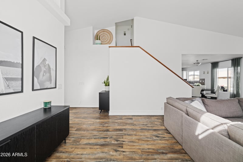 Listing details for 7996 Stella Ave, Glendale, AZ 85303 : This home is the kind of place that feels good the moment you walk in. With 4 bedrooms & 3 full bathrooms (1 bed & bath downstairs!), & 2,175 SqFt, the layout has plenty of space & feels open & inviting. Natural light fills the main living areas & the updated kitchen flows right into the dining & living space.