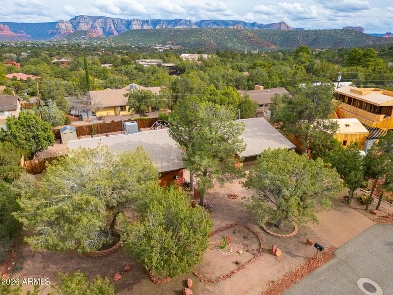 Listing details for 80 Juniper Dr, Sedona, AZ 86336 : Located in desirable Juniper Knolls, this 3 bedroom, 2.5 bathroom Sedona home offers 1,808 sq ft plus a ~300 sq ft guest quarters ideal for visitors, a studio, or office. Designed for true indoor-outdoor living, the expansive backyard features a sparkling in-ground pool, generous patio space, and mature trees creating privacy and shade. Large windows invite natural light and frame stunning Red Rock views , while the open living, dining, and kitchen areas create a comfortable, welcoming flow. Enjoy relaxing poolside, entertaining under Sedona's incredible skies, and easy access to nearby trails, shopping, and dining. A rare opportunity in an unbeatable location.