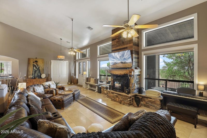 Listing details for 800 Oak Point, Payson, AZ 85541 : Experience elevated Rim Country living in this beautifully maintained 4-bedroom, 2-bath home in Payson's Woodhill Subdivision. Offering 3,015 square feet, this property features vaulted ceilings, energy-efficient windows, and an open-concept floor plan designed for both comfort and functionality. The kitchen showcases granite countertops, custom cabinetry, and natural stone finishes, creating an inviting space for everyday living and entertaining. Step outside to the oversized covered deck and take in panoramic mountain views--an ideal setting for relaxing or hosting gatherings. The spacious primary suite offers a spa-inspired bath with modern finishes. Additional features include a 3-car garage, dedicated office space, bonus rooms, and ample storage throughout.