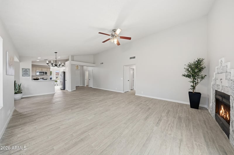 Listing details for 8008 Krall St, Glendale, AZ 85303 : Cozy up to a fireplace in this open floor plan. New tile floors, New paint, New Granite Countertops, New Cabinets throughout, New Mirrors, New Lights, Beautiful large New Primary Shower and Hall bath to be proud of, New Microwave, Clean Refrigerator. Backyard is an open slate with large shade trees on the east side. Walk to schools, near Cardinals stadium and Coyote's arena. Most everything has been done for you. Welcome Home!!!