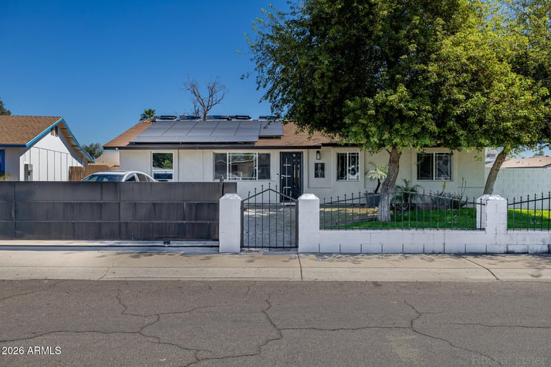 Listing details for 801 68th Ave, Phoenix, AZ 85043 : This home won't last long! Solar owned outright, brand new roof (March 2026), 8 yr old HVAC, fenced front grass yard with mature trees, 2 RV gates, covered patio, gazebo, storage sheds, and a built-in BBQ. Inside you will find granite countertops and pantry in a good size eat-in kitchen; dual pane windows, freshly painted interior (2026) with many upgrades; all with no HOA. Within one mile of the I-10, easy access to downtown Phoenix or Westgate / State Farm Stadium, shopping, dining, entertainment, movies, sporting events, casino; all about 20 minutes or less.