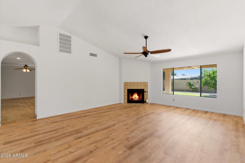 Listing details for 801 Aire Libre Ave, Phoenix, AZ 85022 : Welcome to this beautifully maintained home in the desirable Moon Valley area. Offering 3 bedrooms, one features French doors and a closet, making it ideal as a bedroom, home office, or flex space. Guests will appreciate the newly updated bathroom, along with fresh paint and new flooring -there's no carpet anywhere in the home. The spacious primary suite includes a walk-in shower and private access to the backyard for added convenience. The heart of the home is designed for both everyday living and entertaining, with a large kitchen island, double ovens, and plenty of room to gather. Enjoy cozy evenings by the fireplace in the open great room, complemented by a formal dining area for more intimate occasions. Step outside to a generous covered patio overlooking a low-maintenance backyard. A separate fenced area provides flexibility for a play space, dog run, or additional storage, complete with a large shed. Community features a lovely park with play area and shade-perfect for everyone! This home offers true peace of mind with major updates already completed: roof (2023), HVAC with air scrubber (2022), water softener (2023), irrigation system (2024), and water heater (2024). The guest bathroom was fully refreshed in 2026 with a new vanity, flooring, paint, and lighting, and additional new flooring was installed in the bedrooms, dining area, and family room in 2026. Conveniently located near major highways, shopping, dining, and just a short drive to Downtown and Scottsdale, this home truly has it all.
