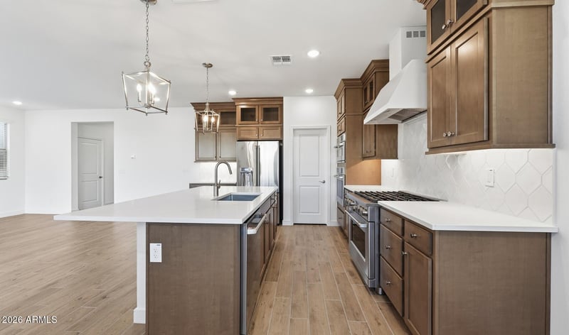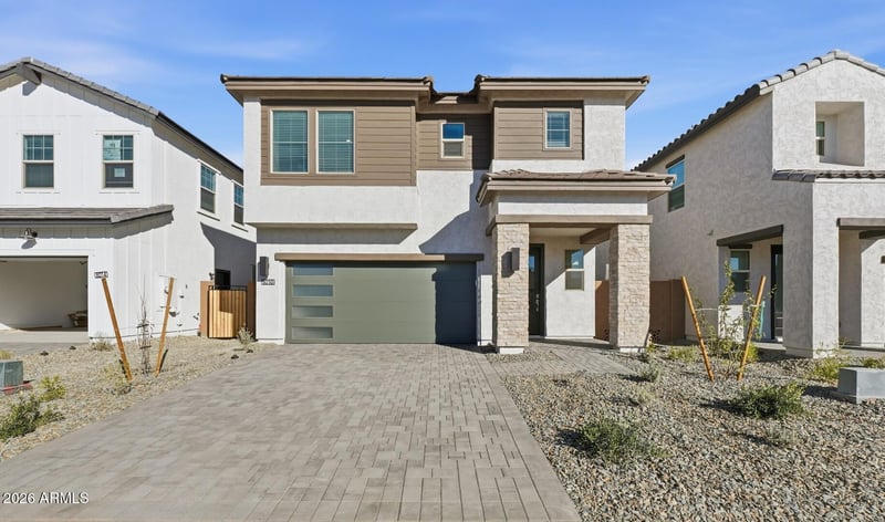 Listing details for 8010 Royal Palm Rd, Peoria, AZ 85345 : ~Special CASH Pricing Available $529,990~ Welcome to Manor at Legacy Place, close to Loop 101, Westgate's entertainment, and premier shopping and dining. This elegant Hampton plan offers 5 bedrooms and 3.5 baths with refined Classic-inspired touches throughout. The gourmet kitchen stands out with White Shaker cabinetry, Arctic White quartz counters, and GE Café stainless appliances, including a French-door fridge. A first-floor bedroom with its own bath adds flexibility for guests, multigenerational living, or office space. The open great room flows to a covered patio for effortless indoor-outdoor living. Upstairs, a roomy loft, three secondary bedrooms, and a luxurious primary suite with dual vanities, a soaking tub, and a walk-in shower complete this stunning home.