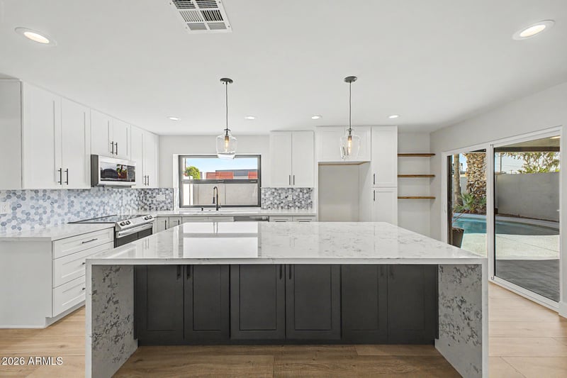 Listing details for 8013 Hubbell St, Scottsdale, AZ 85257 : The search is finally over! This delightful residence welcomes you with an attached garage, a low-maintenance yard, and a charming paver walkway. Discover a spacious great room with a soothing palette, recessed lighting, attractive wood-look flooring, and a wet bar for entertaining. The impeccable chef's kitchen boasts granite counters, white shaker cabinets, chic pendant lighting, a decorative tile backsplash, stainless steel appliances, and a large center island with a breakfast bar. The serene main bedroom showcases sliding door access to the backyard and a private bathroom for added comfort. Spend enchanting evenings in the backyard, complete with a covered patio and a sparkling pool for refreshing dips on hot days. Don't miss out on this fantastic opportunity!