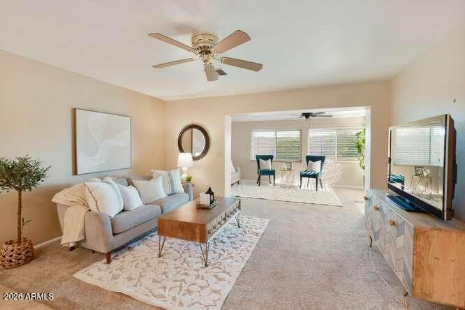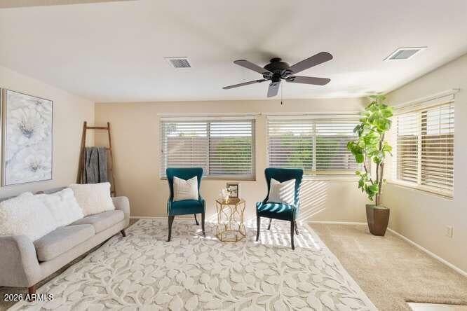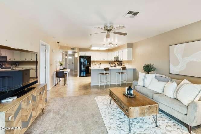Listing details for 8020 Keats Ave #301, Mesa, AZ 85209 : Enjoy easy townhome living in Sunland Village East Garden Condos, a desirable 55+ community. This 2-bedroom, 2-bath split floorplan home features newer windows for quiet comfort and energy efficiency, a newer Carrier 3.5 ton AC (2024), and numerous updates throughout. The bright kitchen includes a new microwave, new garbage disposal, & a breakfast bar, while the spacious living area is perfect for relaxing or entertaining. The primary suite offers a walk-in closet, double vanity and a remodeled shower . Ceiling fans throughout add comfort. The oversized 1-car garage includes abundant storage. Private outdoor space provides room to grill or enjoy Arizona's beautiful weather. Move-in ready!