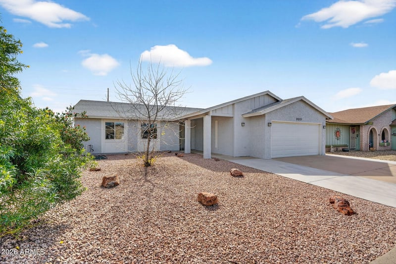 Listing details for 8033 Flossmoor Ave, Mesa, AZ 85208 : Coming Soon! Well-designed three-bedroom, two-bath home located on a cul-de-sac in the Fountain of the Sun gated golf course 55+ community. This is the only three-bedroom currently available and offers one of the lowest HOA fees in the neighborhood. Fully remodeled approximately five years ago, the home features extra-wide, wheelchair-friendly hallways, tile flooring throughout the main living areas, and LVP in the bedrooms for easy maintenance. The layout provides excellent flow, abundant storage, and a garage with a workshop area—ideal for hobbies or additional organization. Owned water softener conveys. Washer, dryer, and refrigerator do not convey. This neighborhood boasts a country club, golf course, pickleball and over 50 planned community activities.