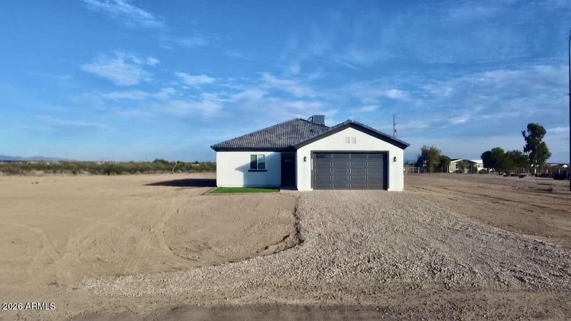Listing details for 8043 349th Ave, Tonopah, AZ 85354 : Introducing a stunning new build residence that seamlessly blends modern ameni guy ties with thoughtful design, ideal for both comfortable living and entertaining. Spanning an impressive total of 2,357 square feet/ 1670sq ft livable home with soaring 9-foot ceilings, this meticulously designed home is situated on 1.5 acre of land, This property offers ample space for horses there is sufficient room for recreational vehicles and other outdoor toys, making it an ideal setting for both horses enthusiasts and those with a passion for outdoor adventures, complete with city water eliminating any concerns about shared well issues. This property features four spacious bedrooms and three full bathrooms, each adorned with elegant tile work from floor to ceiling. The master suite boasts a luxurious The master suite boasts a luxurious shower equipped with a bench, rain showerhead, and a convenient niche for toiletries, ensuring a spa-like experience. The home is accentuated by luxury vinyl plank flooring and craftsman trim work, adding a touch of sophistication throughout. Each bedroom has strategically placed outlets. Additional highlights include a tankless water heater, a 240-volt outlet suitable for electric vehicles or tools, and pre-plumbing and wiring for a water softener. The kitchen is a culinary delight, showcasing a stylish deep all-in-one sink, complete with a cutting board, colander, garbage disposal, and a convenient cup washer. All new stainless appliances to elevate the cooking experience. The outdoor space features low-maintenance synthetic grass and a large back patio equipped with ceiling fans, perfect for gatherings or peaceful evenings. An oversized septic tank further complements the property, ensuring efficient functionality. This home is a true masterpiece, inviting you to experience modern living at its finest. Don't miss the opportunity to make it yours!