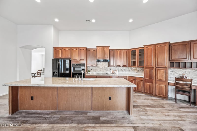 Listing details for 8044 Via Del Sol --, Peoria, AZ 85383 : Live Spaciously in a Rare Fletcher Heights Basement Home, where luxury and comfort are combined. With 3,989 square feet, six dedicated bedrooms, four full bathrooms, a formal living room, dining room, great room, eat-in kitchen, and large flex room, there is space for everyone. The three-car garage provides storage and parking for cars and toys. Enjoy beautiful wood-look tile throughout the first floor, fresh interior paint, 10-foot ceilings, and over 15-foot vaulted ceilings in the main living spaces and hallways. The bright, open kitchen features a 12-foot island, 42'' cherry cabinets, a pantry, and a dining space with an arcadia door that opens to the covered patio with an extended pergola and green space, perfect for outdoor entertaining and relaxation. This property has been well-maintained, with a newer roof and HVAC systems. Fletcher Heights has inviting parks, tennis courts, and playgrounds. With schools nearby, children can easily walk or bike to school. Enjoy quick access to the New River Trail for miles of walking and biking. Delight in a variety of shopping and dining options just a stone's throw away. It's no surprise that 97% of residents rate Fletcher Heights five stars for walkability, making it one of the most sought-after family-friendly communities. Don't miss this exceptional opportunity to own a beautiful home here!