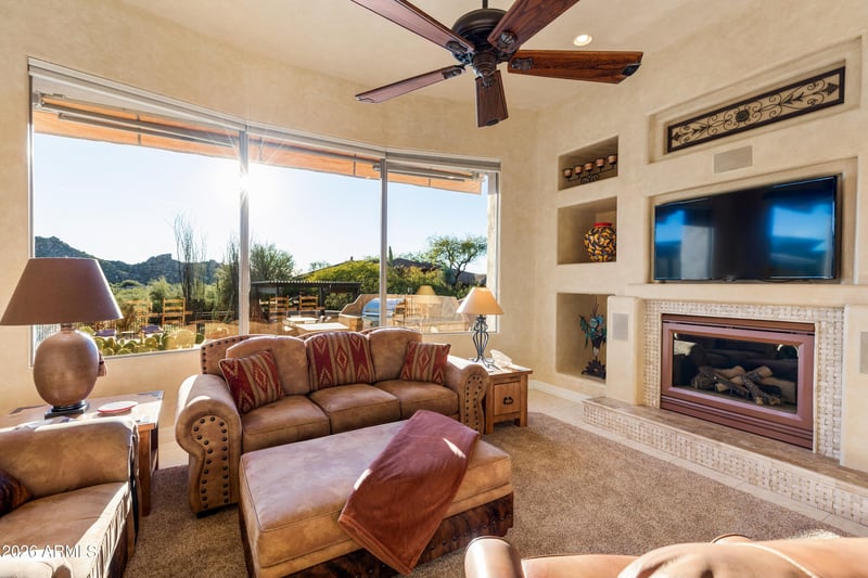 Listing details for 8077 High Point Dr, Scottsdale, AZ 85266 : Enjoy Unobstructed mountain views overlooking a resort-style backyard with a heated pool, expansive patio, outdoor dining, and built-in BBQ are just the beginning. Located in the gated community of Verdante at Westland Estates, this soft contemporary residence sits on a nearly three-quarter-acre corner lot and has been meticulously maintained, used only during the winter seasons. Designed to capture light and views, the home offers 12-foot ceilings, abundant natural light, and an open, airy floor plan. From the kitchen and dining area, enjoy unobstructed views of Black Mountain from the kitchen dining table while the backyard showcases warm winter south facing, protected views of Winfield Mountain, a truly rare and captivating setting. The interior features upgraded cabinetry, custom countertops, recently luxury stainless steel appliances, a breakfast nook, and a butler's pantry connecting the formal living and dining rooms. A large family room with fireplace and entertainment center creates a comfortable yet refined gathering space, complemented by a separate office/den ideal for working from home. The thoughtfully designed split floor plan offers privacy throughout, with all 3 bedrooms featuring private ensuite baths. The exceptional primary suite includes a sitting area, outdoor access, and a spa-like bath retreat. Recent improvements include a newer HVAC system (2024), tankless water heater (2018), and a newer pool heater (2023), ensuring comfort and efficiency. The low-maintenance 3/4 acre setting provides the perfect blend of luxury, functionality, and ease of ownership. This immaculate home delivers the ultimate desert lifestyle, very open, light, airy, and perfectly positioned to enjoy Arizona's most iconic mountain views from sunrise to sunset.