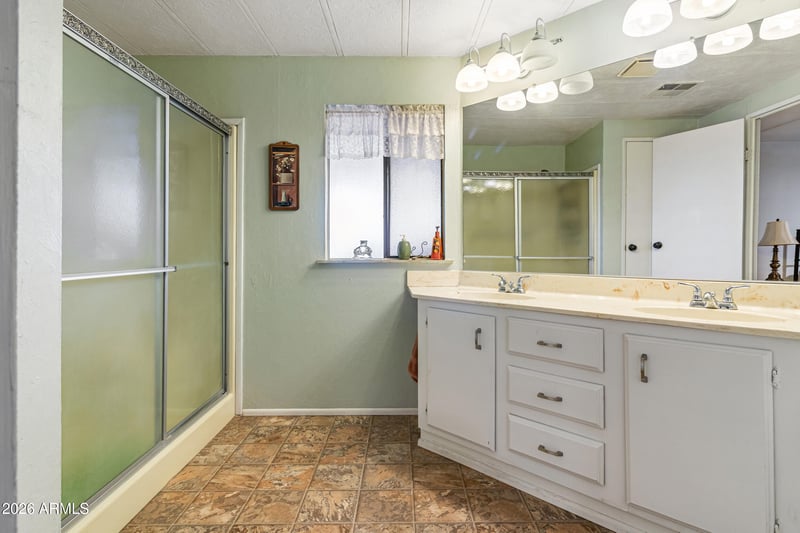 Listing details for 8103 Southern Ave #71, Mesa, AZ 85209 : FULLY FURNISHED*CLEAN 1984 PALM HARBOR 3 BEDROOM OR COULD BE USED FOR OFFICE/BONUS AREA,2 BATHROOM DOUBLEWIDE,1352 SQ FT,FULL LENGTH ENCLOSED AZ/LANAI ROOM W/FRONT & REAR SEATING AREA,END UNIT NEXT TO WASH/WALKWAY***GROUND SET***N/S EXPOSURE,***VAULTED CEILINGS,NEW DUAL PANE FRONT BAY WINDOWS WITH SHADE SCREENS,KITCHEN/DINING BUILT IN CABINETRY,WASHER/DRYER HAS EXTRA STORAGE AND COUNTERTOP SPACE, MASTER BEDROOM WALK IN CLOSET, MASTER BATHROOM WALK IN SHOWER,DUAL SINKS LOTS OF COUNTERTOP SPACE,TANDEM COVERED PARKING,DETACHED STORAGE SHED/WORKSHOP,LOT RENT APPROX $958 MO.FANTASTIC LOCATION,CLOSE TO FREEWAYS,GOLF,RESTAURANTS,HOSPITALS & RETAIL.COME FEEL THE VIVE OF BRENTWOOD SOUTHERN,CLEAN WELL KEPT GROUNDS AND HOME