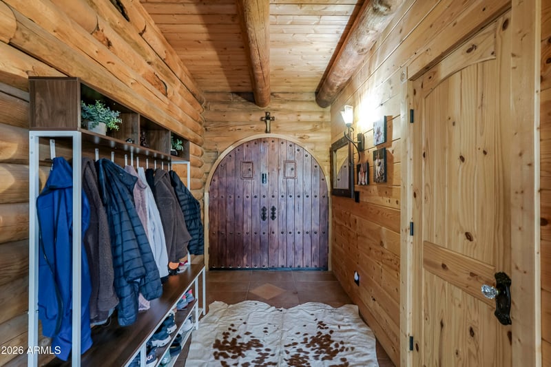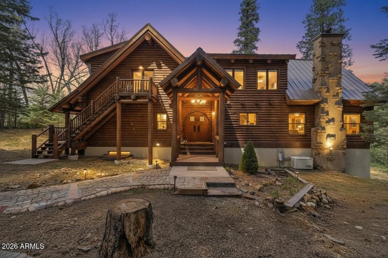 Listing details for 8105 Comstock Mine Rd, Prescott, AZ 86303 : This gorgeous custom built log home with beautiful Douglas fir beams on over two acres situated at 7,000 ft altitude is nestled in the majestic cool ponderosa pines backing to the National Forest. You can live on one level or enjoy the beautiful large primary bedroom on the upper level which has an electric fireplace, sitting area, primary full bath with large soaking tub, seperate shower, large closet area and workout area with views. The main level has a bedroom, living room with fireplace,family room with fireplace, bathroom with a hammered copper clawfoot tub and shower, eat in kitchen. Enjoy the cool summers on the large open & covered deck with view of the seasonal creek and plenty of room for the whole family and friends. Downstairs there are four bedrooms, two 3/4 baths one being a Downstairs there are four bedrooms, two 3/4 baths one being a Jacuzzi shower. For your guests there is a coffee bar room with a standard size refrigerator, sink, microwave, toaster oven and a unique, custom wood counter top made from trees on the property. Step outside from the lower level and enjoy the patio with a newer hot tub and view of the seasonal creek. Be sure to look at the document tab to see all the upgrades the current builder/owner had done to the property in the last two years. This could be a turnkey opportunity.