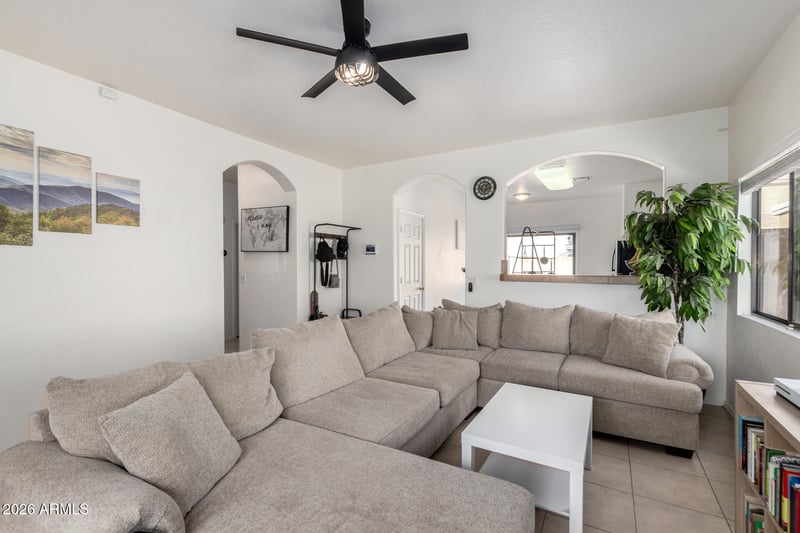 Listing details for 812 Saint Charles Ave, Phoenix, AZ 85041 : Home, sweet home! Come take a look at this charming single-level residence in Vineyard Hills Estates. A 2-car garage & a low-care landscape are just the beginning. Discover an inviting interior showcasing abundant natural light, a neutral palette, archways, tile flooring in common areas, and soft carpet in bedrooms. The formal living room is perfect for receiving guests! The kitchen boasts built-in appliances, tile counters & backsplash, a pantry, and wood cabinetry. With 2 beds & 1 bath, this gem is also ideal for anyone looking to enjoy easy & low-maintenance living. One bedroom includes a walk-in closet. The private backyard creates defined areas for lounging and activities! A sandy ground, artificial turf, & a fire pit complete the picture. Excellent Phoenix location! Don't miss this!