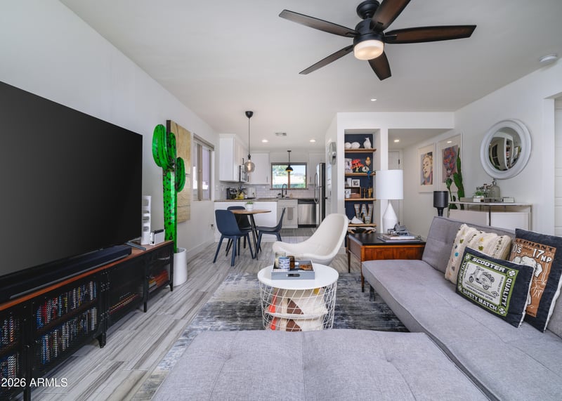 Listing details for 8145 Central Ave #17, Phoenix, AZ 85020 : How many times have you driven down Central and wished you lived here? Life on the Bridle Path is everything you imagine! Highly walkable, ultra charming; in the middle of it all, yet tranquil. This Mid-Century Modern condo is a masterclass in style & preservation. Located on the iconic, tree-lined Central Ave corridor this home offers a rare opportunity to own a piece of Phoenix architectural history that feels as fresh today as it did in the 1960s. From the moment you enter, you are greeted by clean lines, organic textures, and an abundance of natural light. Impeccably maintained and curated, the interior balances authentic vintage character with elevated updates. The open-concept living area serves as the perfect backdrop for entertaining, flowing seamlessly into a kitchen... marries retro charm with modern functionality. Both spacious bedrooms offer serene retreats, while the two bathrooms have been preserved with a keen eye for design, boasting original tiling and fixtures that exude personality. You are perfectly positioned for the ultimate North Central lifestyle. Start your mornings with a jog or a shaded stroll along the historic Murphy Bridle Path, just minutes away. In the evenings, you are moments from some of the city's best dining sceneswhether you're craving upscale Italian, a casual patio brunch, or a craft cocktail in a hidden speakeasy. The Highlights: Prime Central Ave corridor (85020) Authentic Mid-Century Modern Architecture Pristine, stylish, and move-in ready Walking distance to the Murphy Bridle Path and top-tier dining This is more than a condo; it's a lifestyle statement. Properties with this level of character and condition are rare finds in this corridor. Don't miss the chance to experience the magic of North Central living.