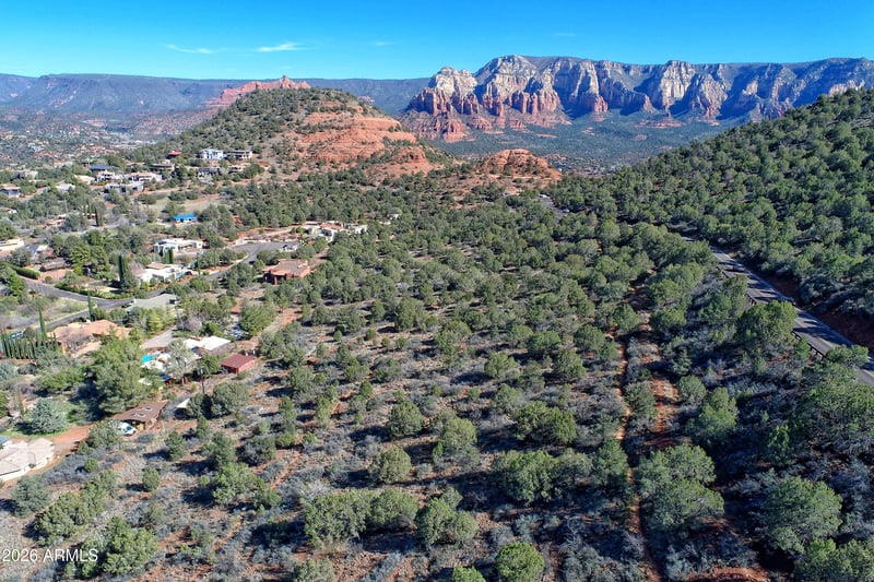 A rare 2.44-acre residential homesite in prime West Sedona- In town and bordered by National Forest on two sides. The setting feels protected, almost secret, with sweeping, jaw-dropping red rock views that span Turtleback, Wilson Mountain, Steamboat Rock, Brins Mesa, Mitten Ridge, Oak Creek Canyon, Coffee Pot, Sugarloaf, Thunder Mountain, Chimney Rock, Doe Mountain, Cockscomb, Airport Mesa, and the distant Mogollon Rim.Zoned RS-35 with metes and bounds: no HOA, homes only and the parcel can be split once. Natural gas is available. This is a legacy sloping site where views and location finally align. In West Sedona, that combination is nearly impossible to replicate and getting rarer by the day.
